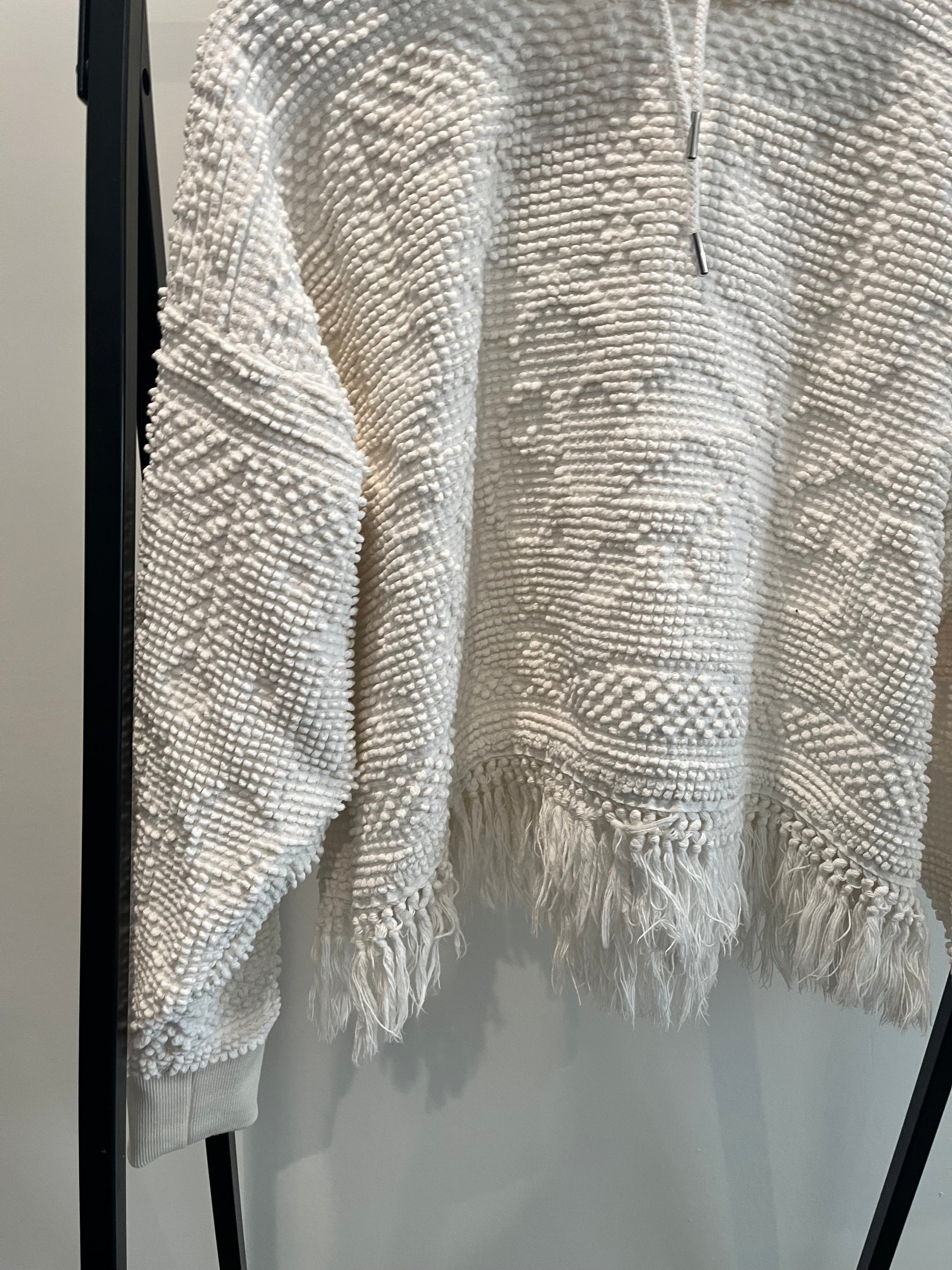 Size: S/M The fit is a slightly oversized boxy hoodie.