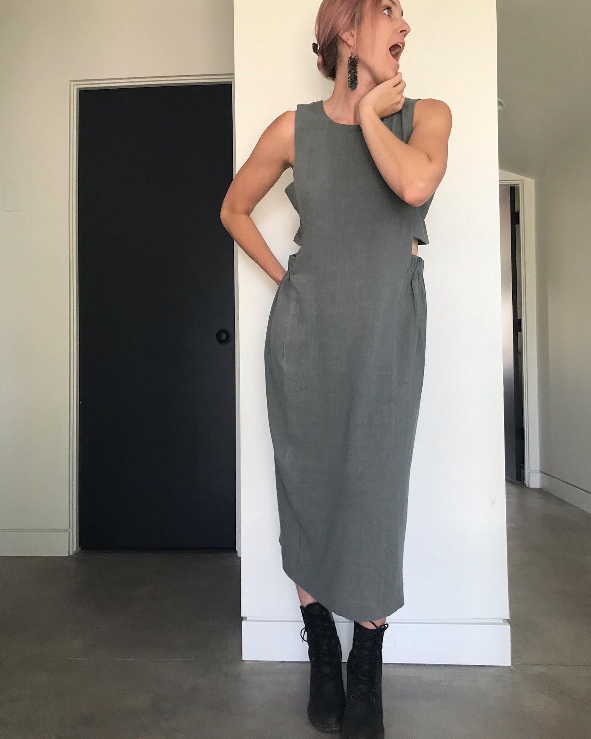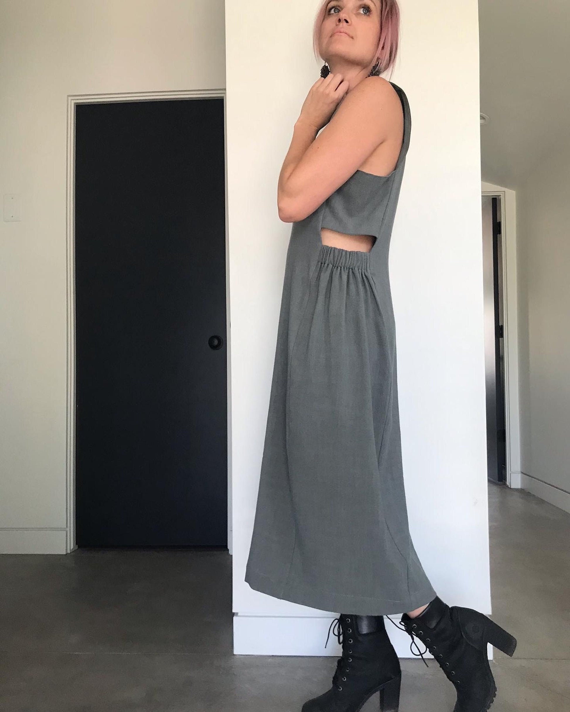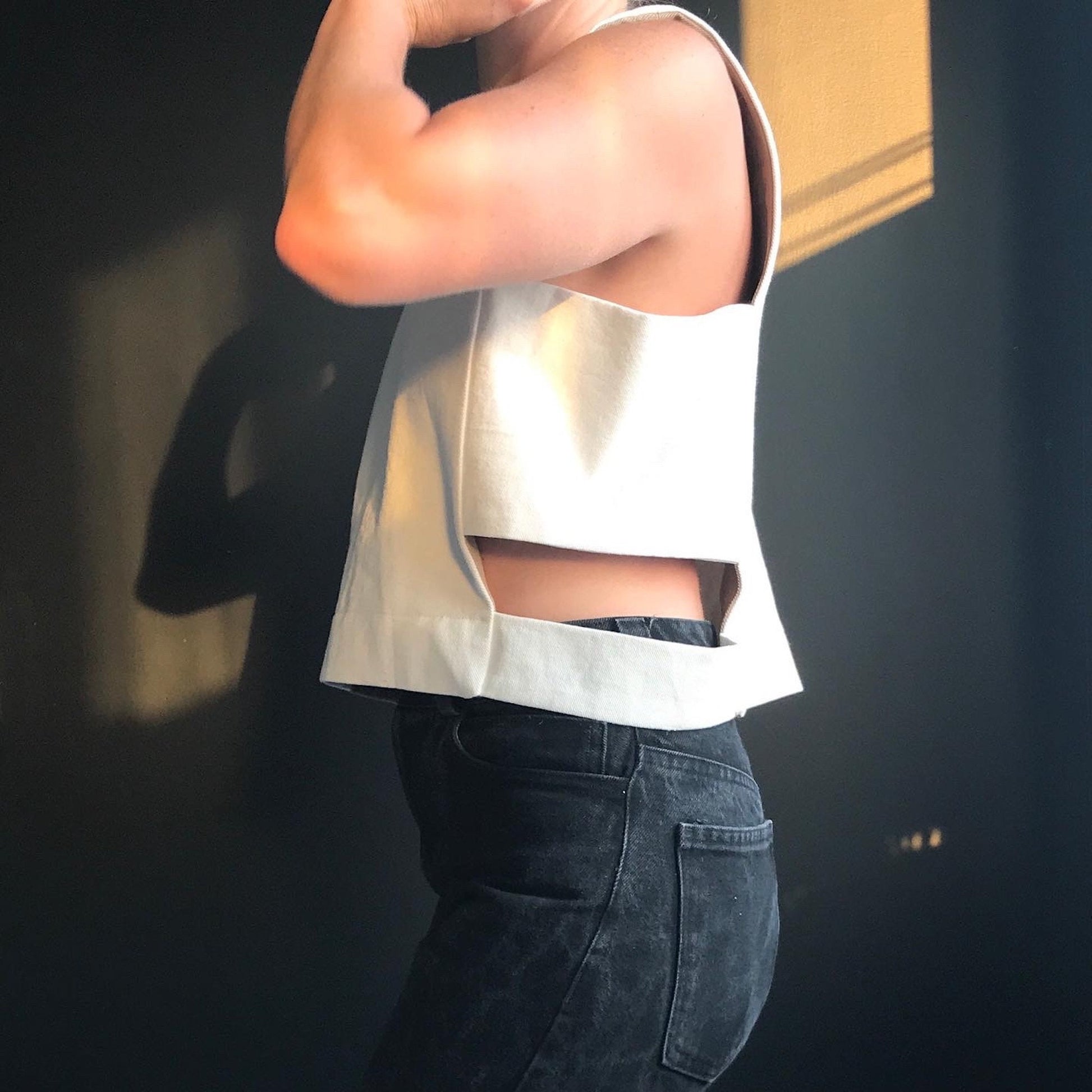 LeeLoo is a modern box fit garment that challenges the traditional way a garment is fitted to the body. The bodice is a simple rectangle with rectangular side panels connecting the front to the back. It is a modest design from the front with a small sneak peek of skin on the sides giving it a sexy and chic vibe. The LeeLoo Pattern is intended to provide a ‘kit of parts’ to be adjusted to fit each unique body.