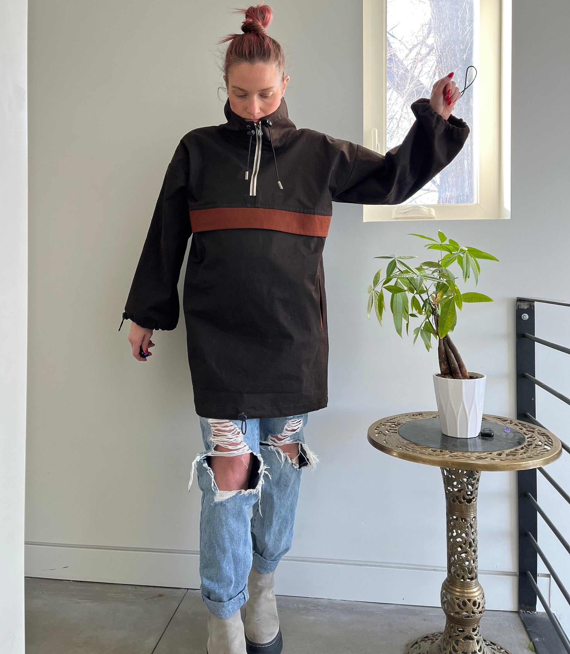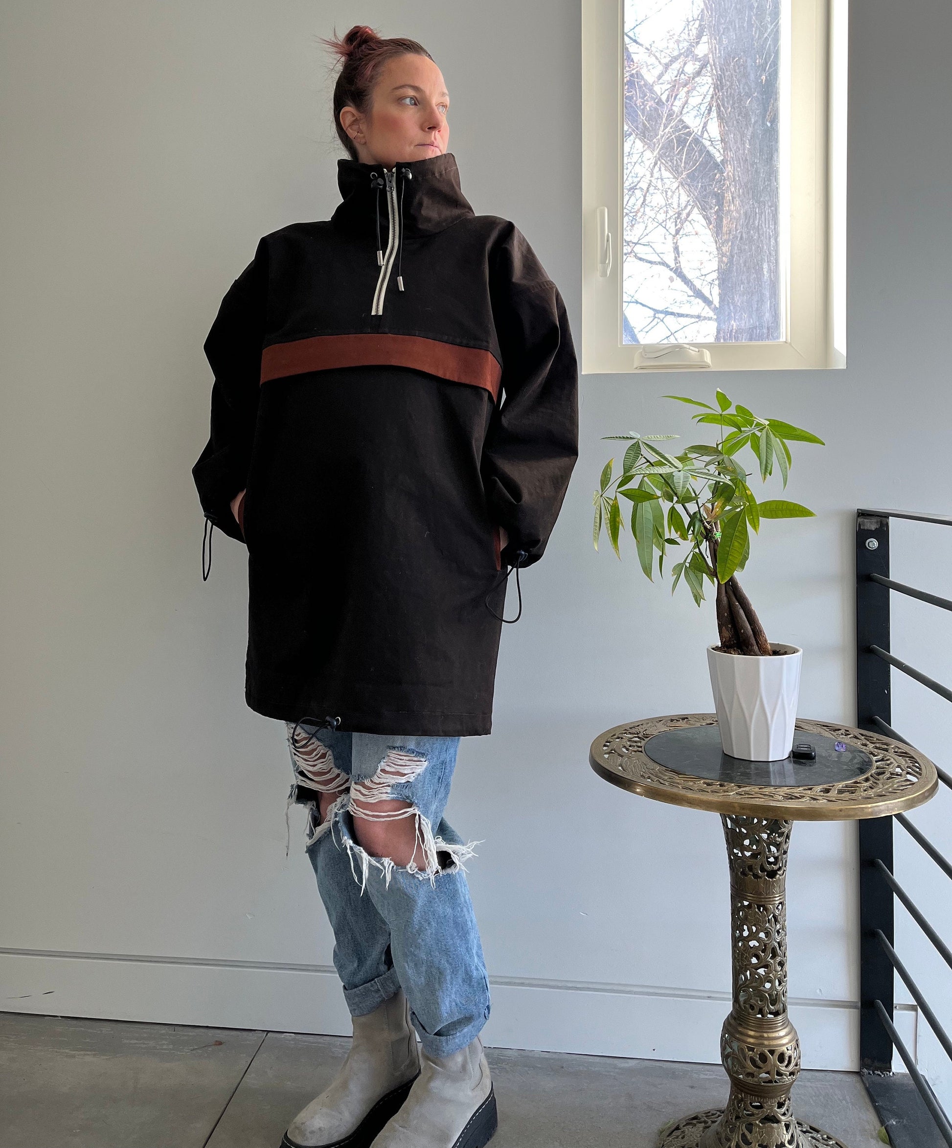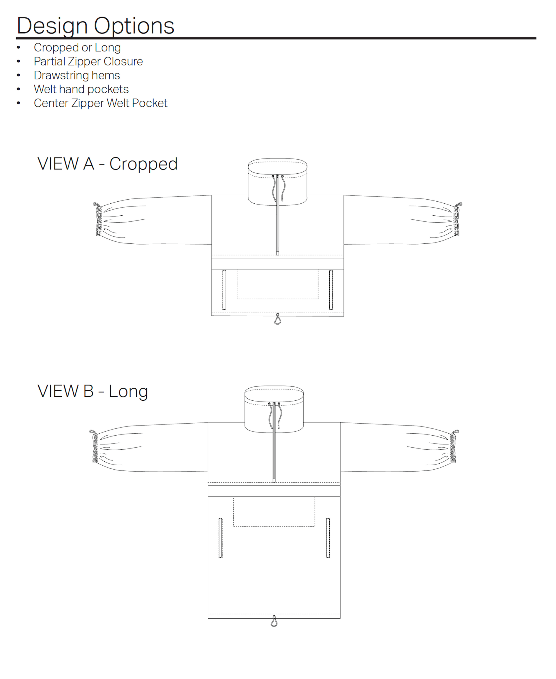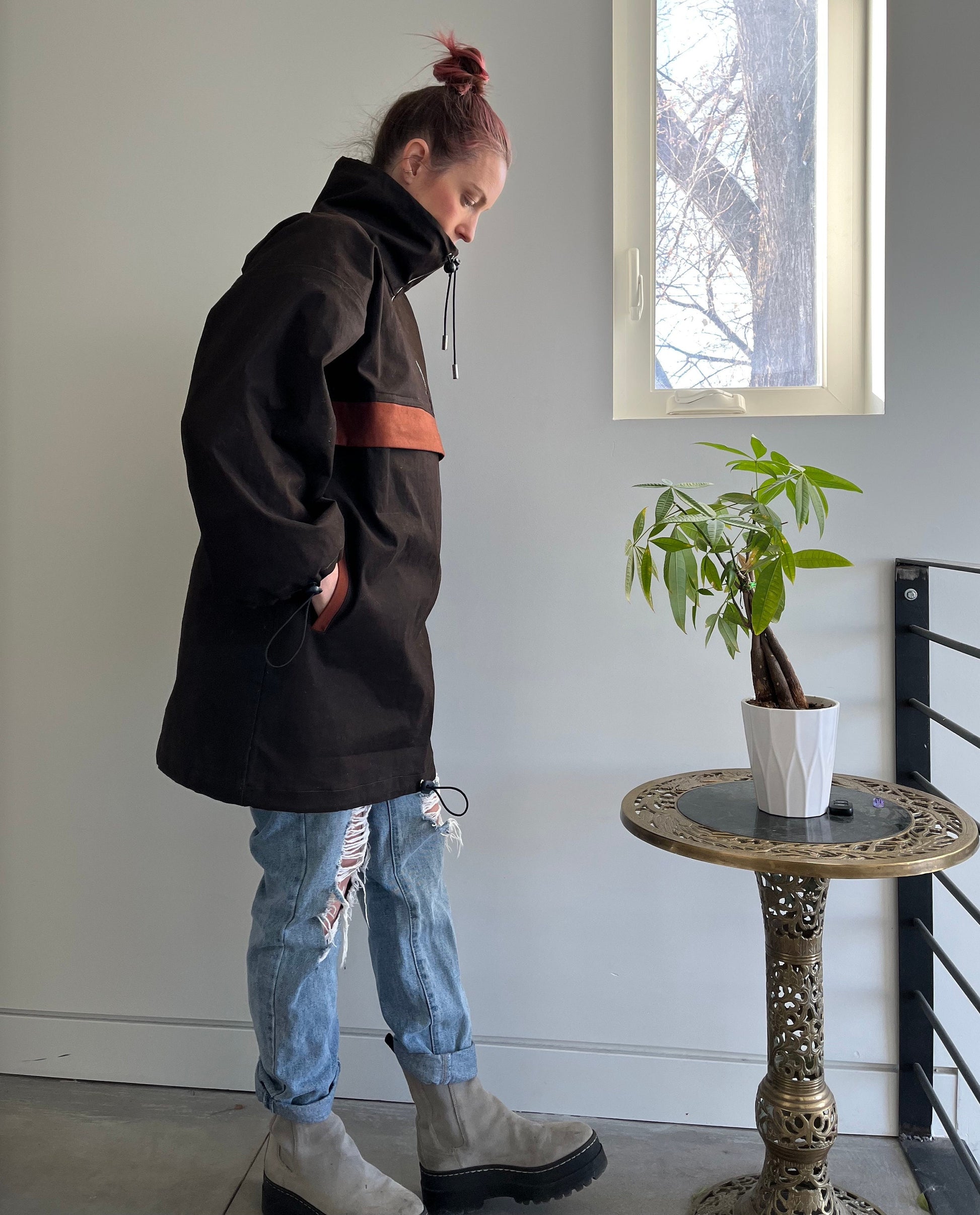 The Anorak is a low waste design. While the design is not 100% zero waste, it pushes the boundaries to be as low waste as possible, yielding no more than 5% waste. Some sizes will produce less waste than others. The overall goal of the design is to make a conscious effort to reduce fabric waste whenever possible.