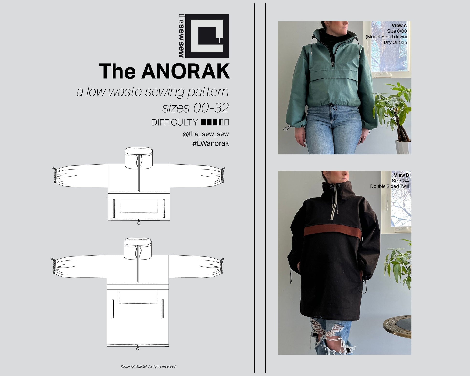 The ANORAK Sewing Pattern [a Low waste design for sizes 00-32, Unisex]
