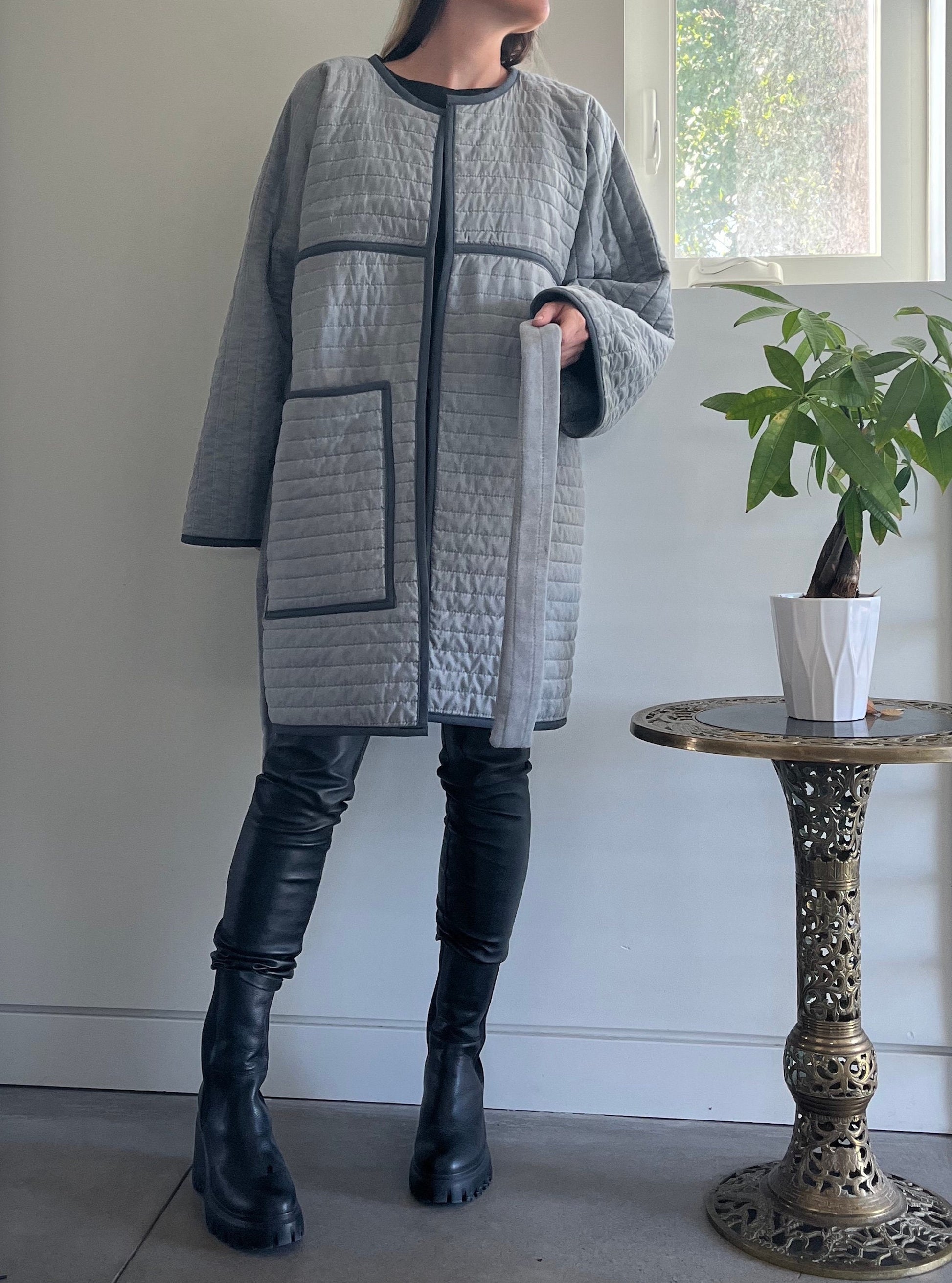 This design is both minimal in look and construction and the oversized boxy fit is chic and modern. The multiple design options will allow one to customize the design to their personal taste.